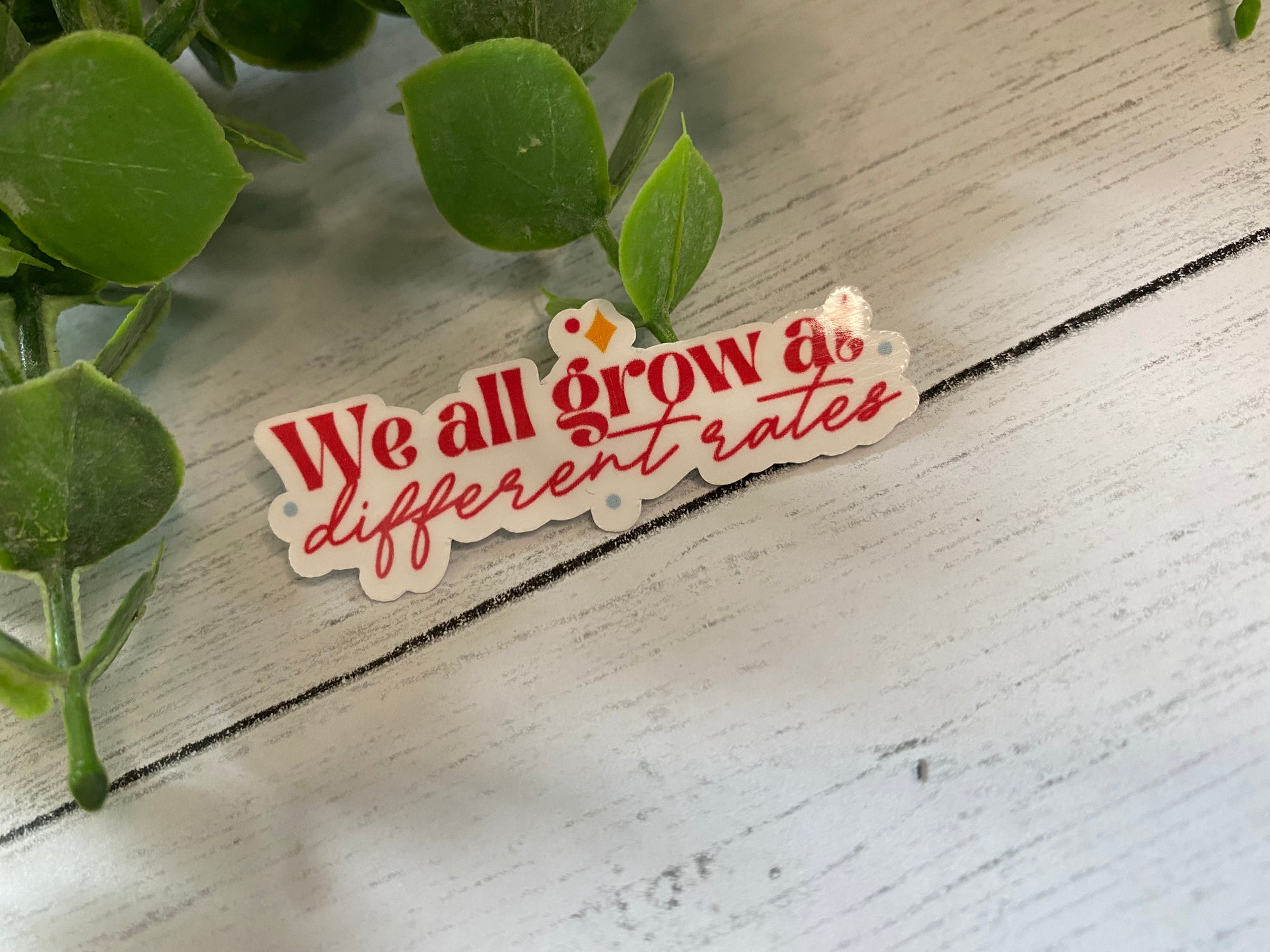 The "We All Grow at Different Rates" sticker is a product with a message of inclusivity and encouragement. It can be used to decorate personal belongings or as a reminder to embrace individual growth and progress. Our stickers are made from high-quality materials to ensure they are durable, long-lasting, and waterproof.