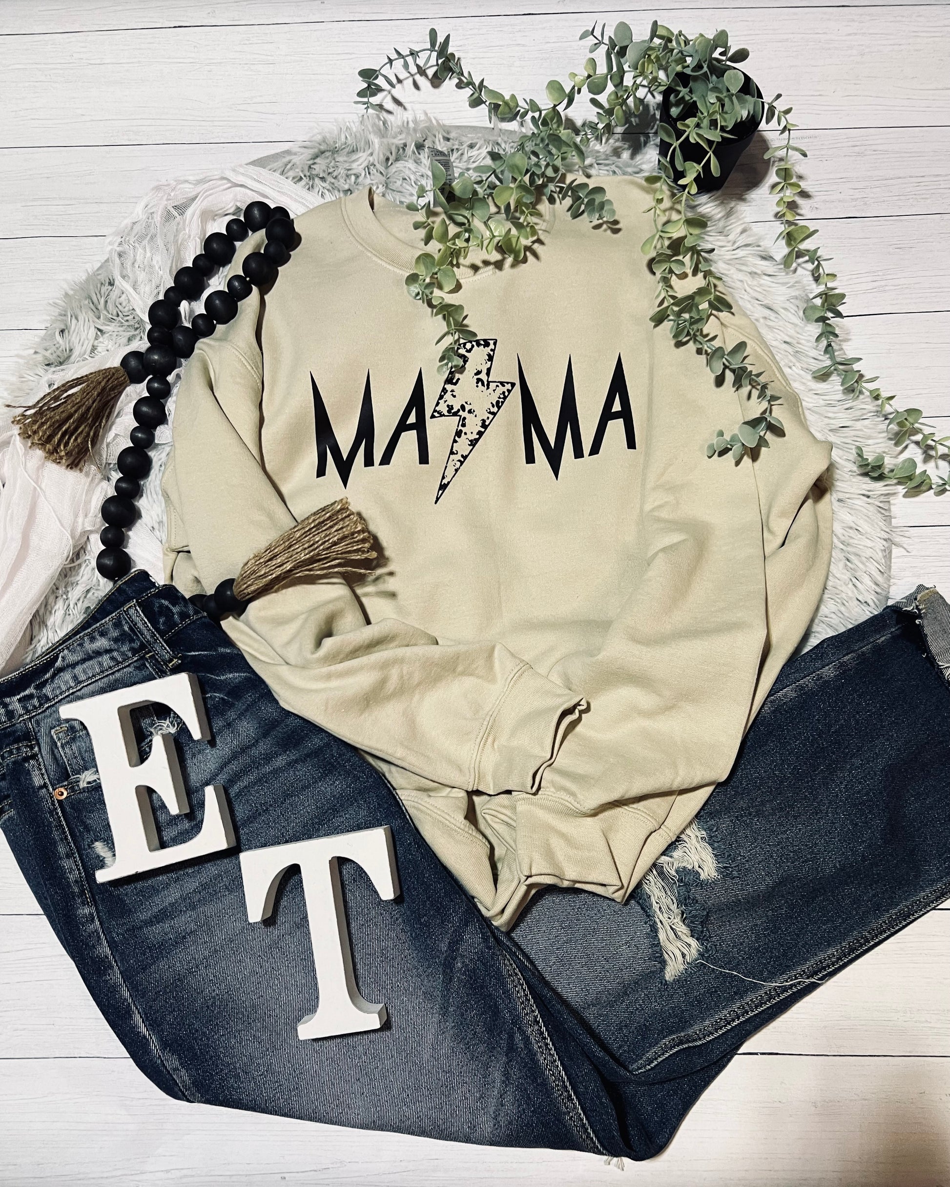 This lightning bolt sweatshirt for mamas is a stylish and comfortable addition to any wardrobe. Made with high-quality materials, it features a bold lightning bolt design that's sure to turn heads. Perfect for cooler days or casual outings, this sweatshirt is a must-have for any fashion-forward mama.